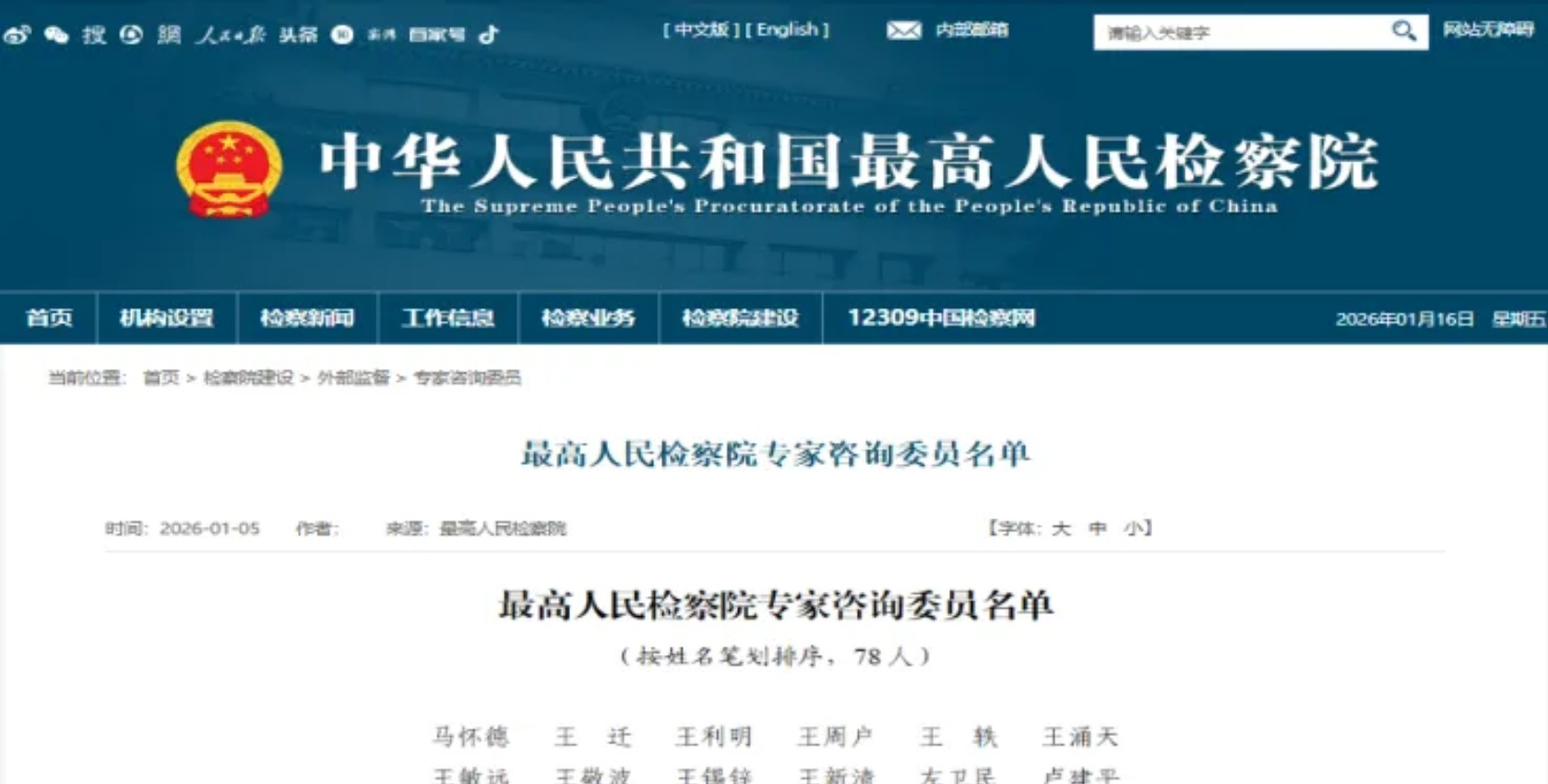我校法学学科2位教授及多位校友获聘最高人民检察院新一届专家咨询委员